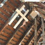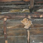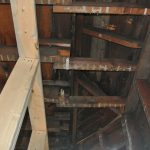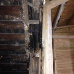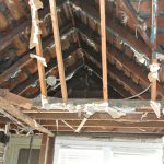 What all of this means is that the entire 3rd floor had no load bearing wall, it was essentially floating on the 2nd floor walls with no support of its own. While floating, it was also carrying over a ton of weight from a 1.5-story roof that had 5 layers of shingles on it, the bottom of which was the original shake from 1881. Therefore, the weight of the roof was pushing the 3rd floor walls outwards, towards the neighbors. So, basically, the 3rd floor was ready to collapse and the rear bedroom was breaking off the back of the house.