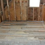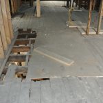 Ultimately, we found that 1) the roof and walls of the 3rd floor had so much water damage that the majority of the water was not, in fact, coming through the holes in the roof - the water was seeping through the wood itself and pooling all over the interior 3rd floor; and 2) since ALL of the floor joists were cut IN ADDITION TO being completely water soaked, they were no longer bearing any load; and 3) the 3rd floor rear bedroom was supported by the rear porch which had its main supporting joist for the bedroom cut off on the interior - why? nobody knows…