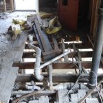 A little hard to see here - I circled where the previous owner had cut holes into every floor joist of the 3rd floor in order to get a plumbing line to the bathroom. The 2nd photo is where the previous owner cut the support joists of the 3rd floor that were also supporting the bay windows in order to….actually, I don’t know what the intent was. I can, however, guess the name of the alcohol involved.